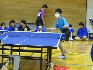 2C保健体育、剣道、面打ちのテストです。相手に対して、連続で面を打ち込んでいきます。