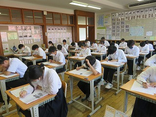3年生は後期の定期テストはありませんので、全体で受ける中学校でのテストもこれが最後です。次のテストは高校入試になります。